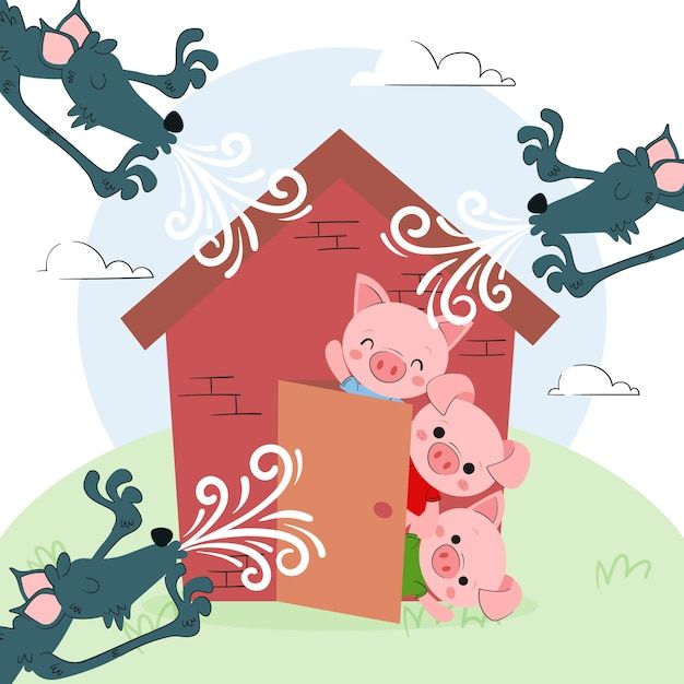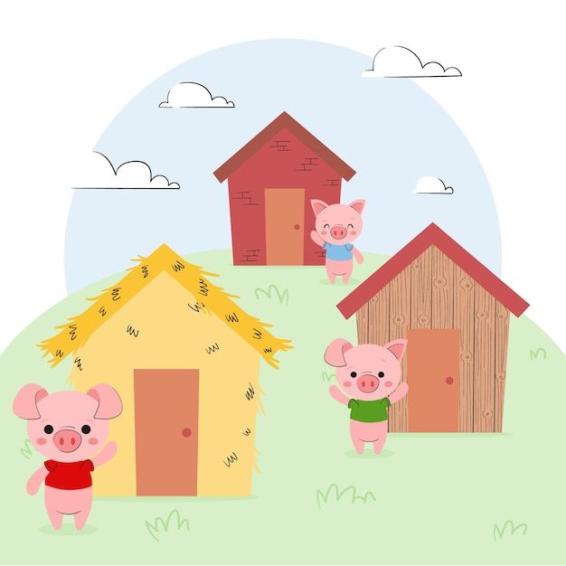 En un pueblito no muy lejano, vivía una mamá cerdita junto con sus tres cerditos. Todos eran muy felices hasta que un día la mamá cerdita les dijo: